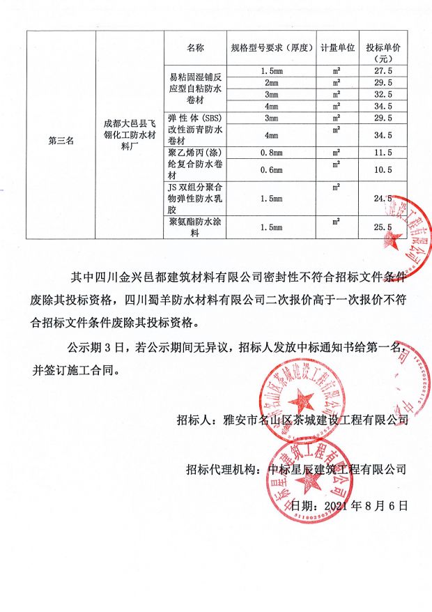 雅安市名山區(qū)綜合農(nóng)貿(mào)中心新建項(xiàng)目防水工程專業(yè)分包采購(gòu)招標(biāo)結(jié)果公告...